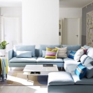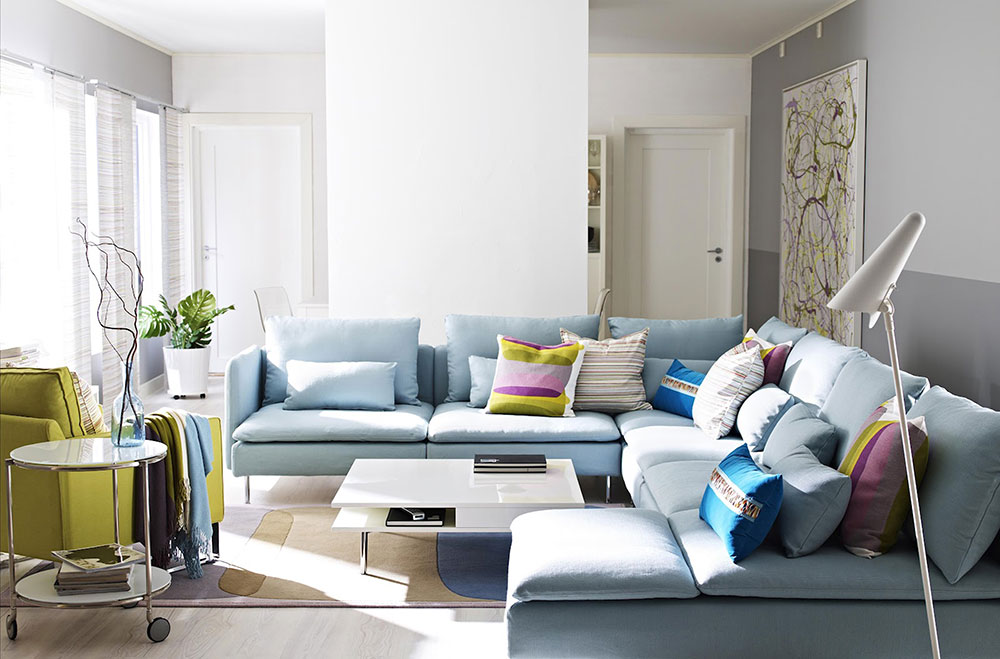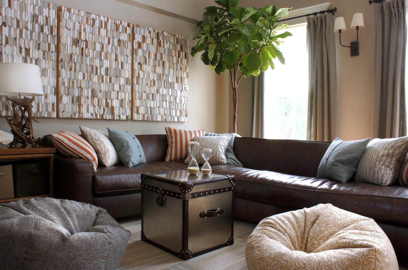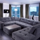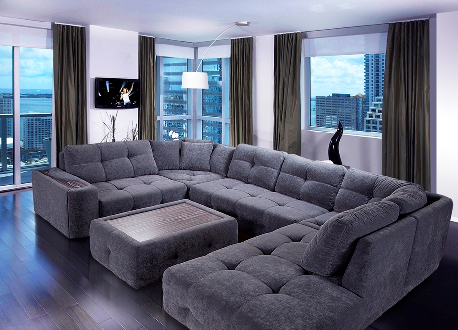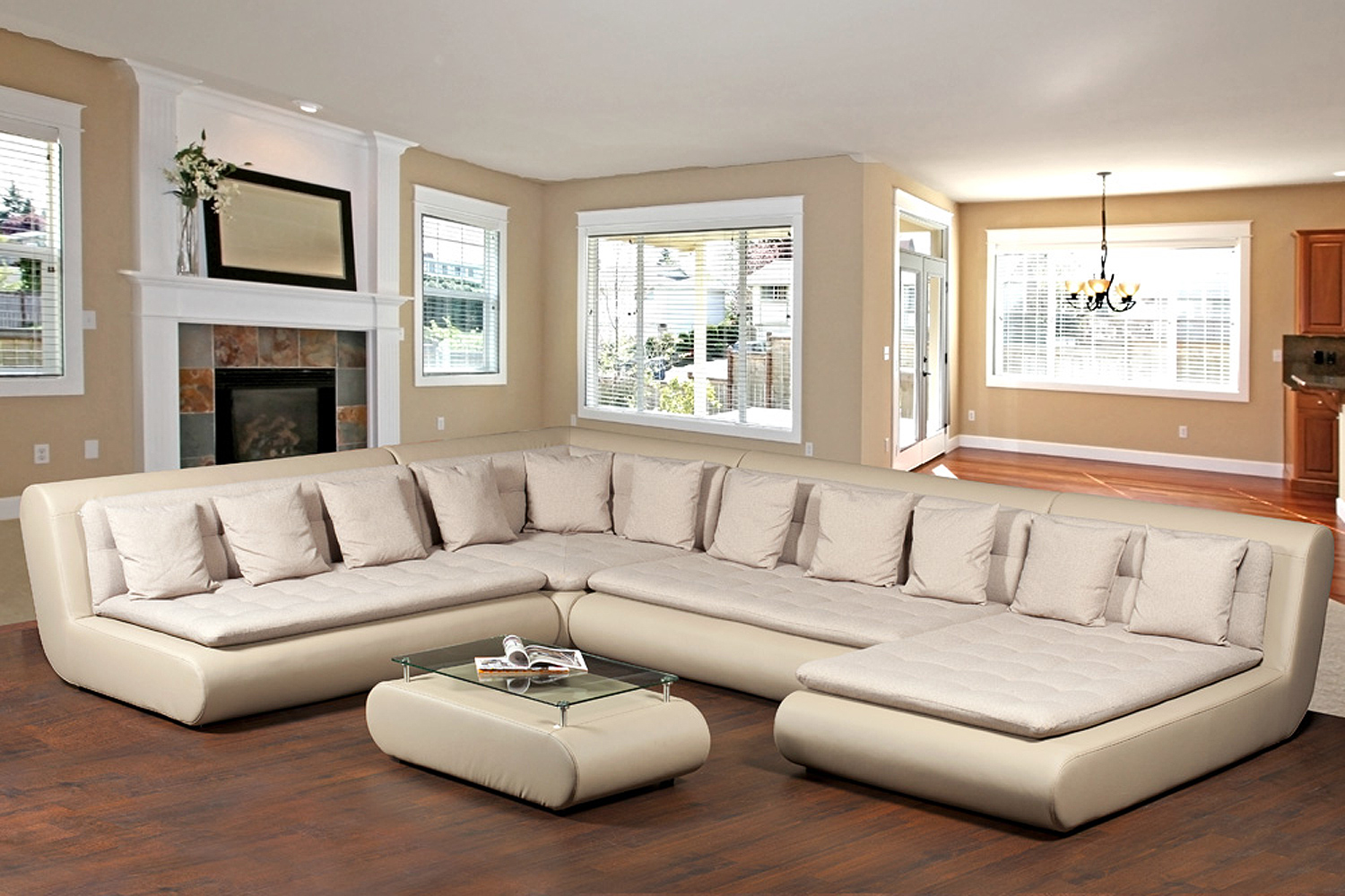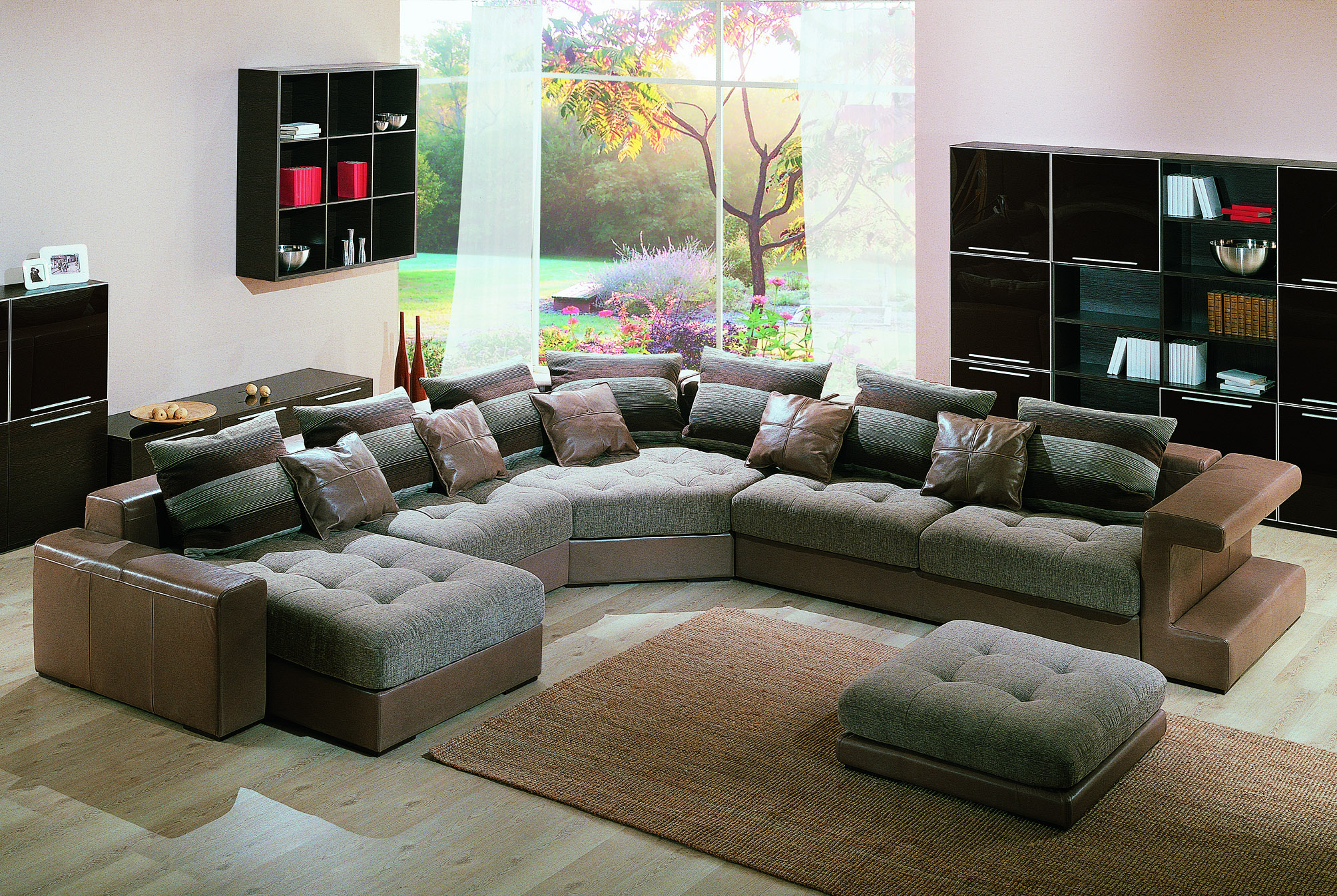 Experten aus dem Bereich Design rieten dazu, große Möbel in Wohnzimmern zu installieren. Auf solchen Polstermöbeln findet problemlos eine große Gruppe von Freunden oder Familie Platz.