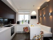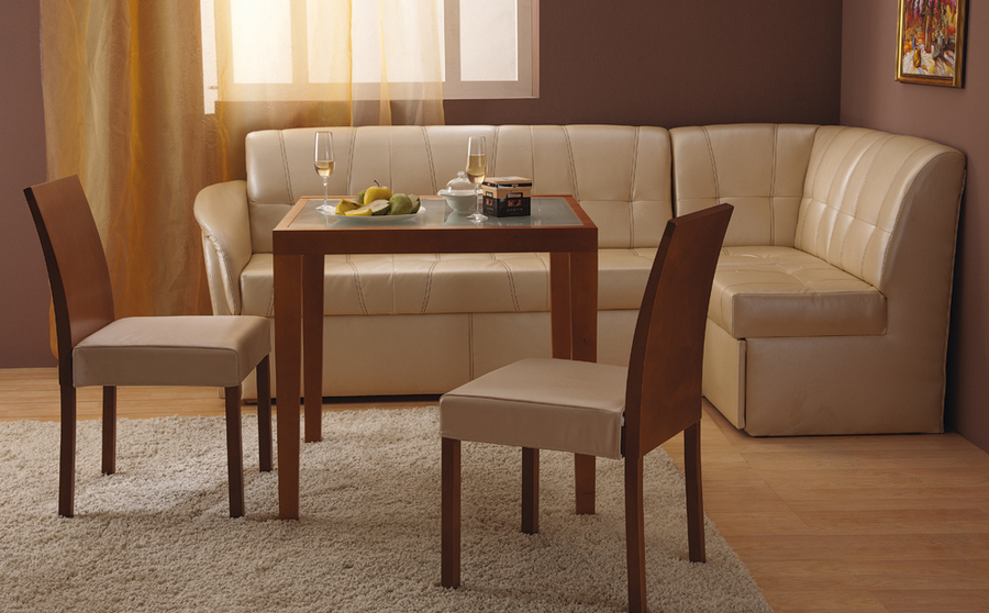 Wie für den Rest der Räume im Haus, Polstermöbel für die Küche sollten unter Berücksichtigung solcher Faktoren ausgewählt werden: Farbgestaltung, Interieur, Raumgröße. Gestepptes Velours-Sofa wird eine stilvolle Ergänzung zu dem Raum in einem klassischen Stil sein. Das Sofa auf den verchromten Beinen, umhüllt von Haut, passt perfekt zu High-Tech oder zurückhaltendem Minimalismus.Experten empfehlen für die Küche ein Sofa aus Leder oder Kunstleder zu wählen. Dies ist eine praktische Verkleidung, die leicht zu reinigen ist.