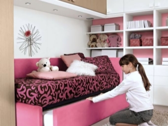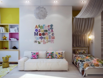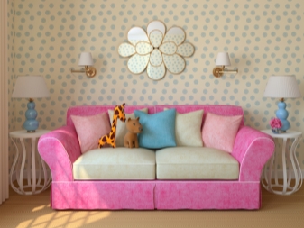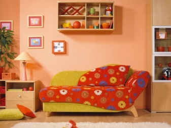 Möbel für das Kinderzimmer sind hell und reich. Das Sofa kann mit ungewöhnlichen Drucken, Streifen und anderen lustigen Bildern verziert werden.Ein großes Sofa ist ideal für ein Zimmer, in dem mehrere Kinder gleichzeitig leben. Am Nachmittag können sie sich entspannen, spielen und plaudern, und am Abend wird das Sofa in nur wenigen Sekunden in einem bequemen und geräumigen Bett stehen bleiben.