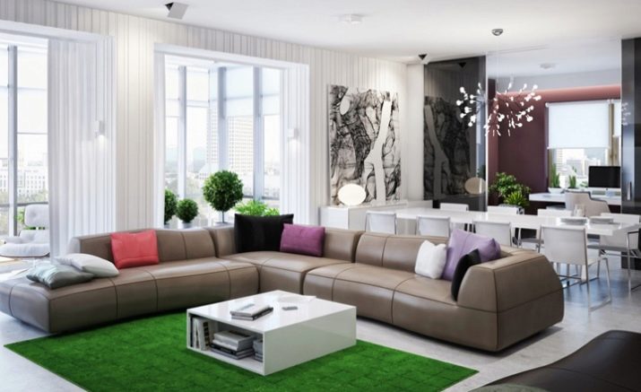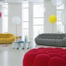 In der Mitte des Raumes beste Wette genug große Modelle von Sofas, sie werden dazu beitragen, einen Akzent in der Mitte des Raumes zu schaffen. Aber ein kleines Sofa mit Stühlen im gleichen Design ergänzt perfekt das kleine und gemütliche Zimmer. Wenn Sie ein fertiges Zimmer haben, entscheiden Sie sich, das Interieur aufzufrischen, und seien Sie vorsichtig bei der Auswahl der Designer-Sofas. Oftmals erfordern sie eine komplette Umgestaltung, andere Möbel und sogar eine Renovierung der Gestaltung des Raumes als Ganzes.
