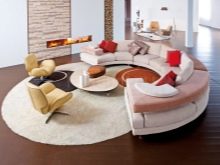 - Runde Sofas. Perfekt einen sehr großen Raum zu ergänzen und es zu einer Art Akzent zu machen, helfen, alle Gäste unterzubringen. Solche Produkte erfreuen nicht nur ihre erstaunliche Designleistung, sondern auch den maximalen Komfort.