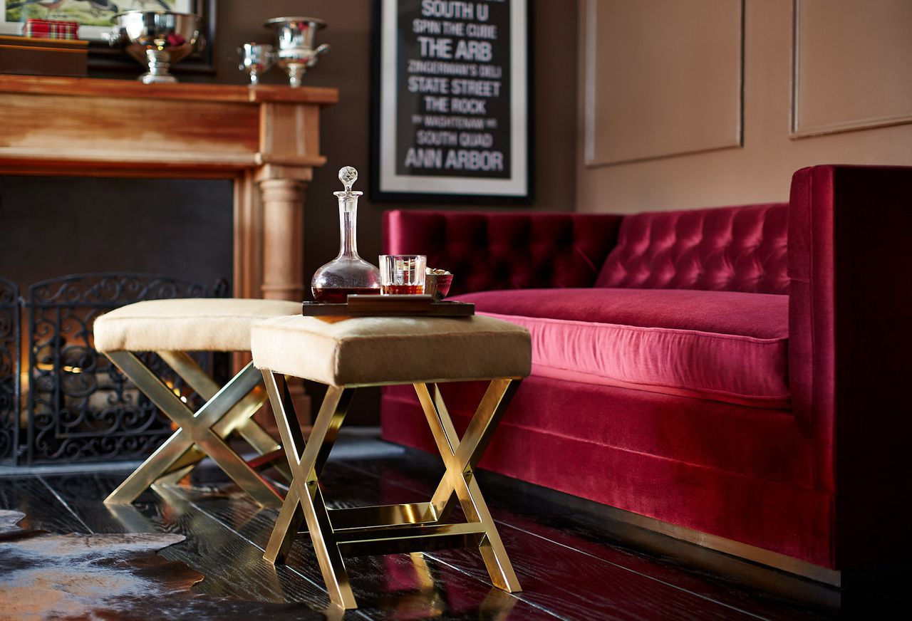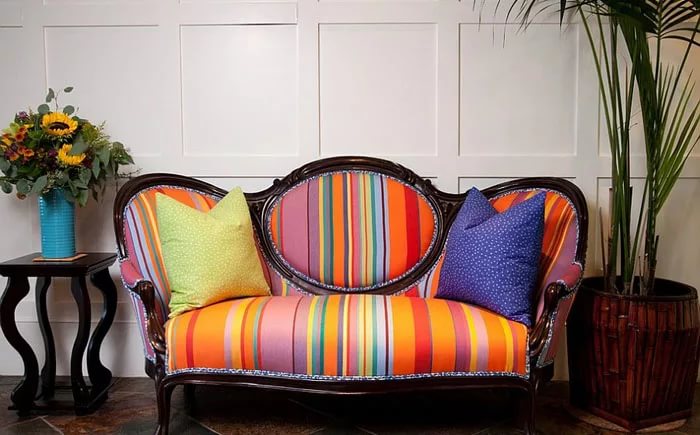 Sie können zu Ihrem "gesteppten" Sofa mit Osmanen in der gleichen Technik oder zu den kleinen Stühlen hinzufügen.