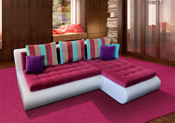 Wenn Sie kein sehr großes Zimmer haben, aber dennoch Platz für ein Sofa und Sie eine sehr kreative Person sind, können Sie in diesem Fall die helle Farbe der Möbel im ursprünglichen Design wählen. Solch ein Designer-Sofa wird nicht banal aussehen, aber es wird Sie und all Ihre Gäste begeistern. Aber sei immer vorsichtig mit hellen Sofas,Sehr kleine Räume können sie optisch noch kleiner machen - besonders wenn es eine Masse an anderen Möbeln gibt.