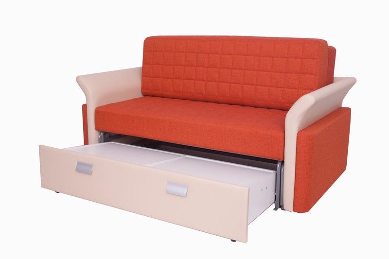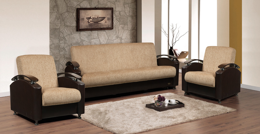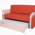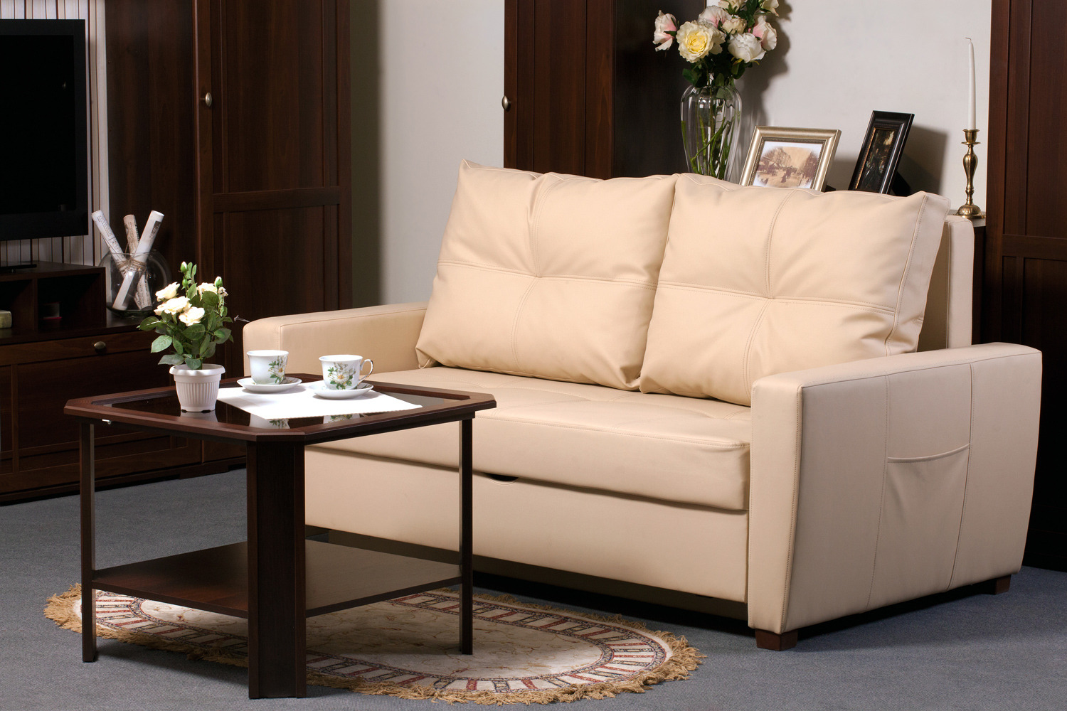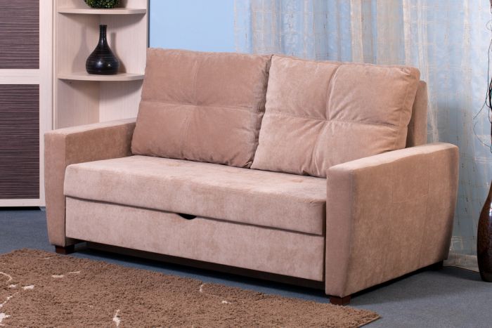 Die Rückenlehne und der Sitz der Sofas dieser Linie sind mit strapazierfähigem Luxusstoff und der massiven Basis und bequemen Armlehnen - Kunstleder - bezogen. Der Rahmen besteht aus Holz und laminierter Spanplatte,Die Füllung der Matratze und Rückenlehne enthält eine Schicht aus anti-allergenen Polyurethanschaum Marke FlexFoam mit einem "Memory-Effekt" und Stahl Schlangenfedern. Die Möbel haben eine geräumige Schublade für Bettwäsche.