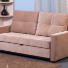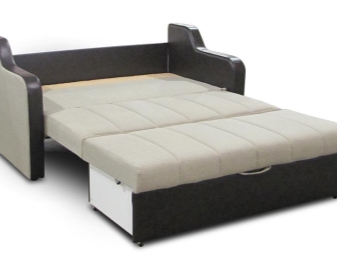 Kompaktes Sofa "Dubai" mit dem Umwandlungsmechanismus "Akkordeon" ist ein Budget, aber ziemlich bequeme Möbel für einen kleinen Raum. Im zusammengebauten Zustand sind die Abmessungen ziemlich klein, aber beim Entfalten können Sie einen ziemlich geräumigen Liegeplatz mit Abmessungen von 1200x2000 mm bekommen. Der Rahmen aus einer Pinienstange dient als Grundlage für eine Wäschebox. Als Füllstoff wird Polyurethanschaum mit hoher Dichte verwendet.