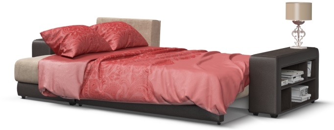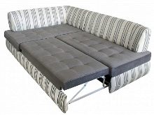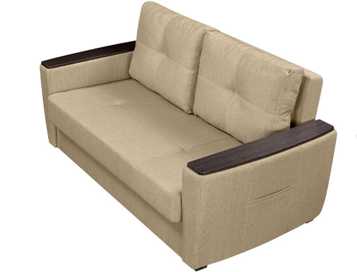 Modell Sofa "Miami"(" Dubai ") verwendet einen dreiteiligen Eurobook-Layout-Mechanismus. Dieses Design ist sehr einfach und zuverlässig, da es keine komplexen Komponenten enthält, die brechen könnten. Es ruht auf einer massiven Holzplatte. Der Füller der Matratze und des Rückens ist eine Frühlingsschlange und PPU. Geformtes Bett hat die optimale Größe eines Doppelbettes, und die Wäschekiste ist ziemlich geräumig. Der Rahmen besteht aus Nadelholz, Sperrholz und laminierter Spanplatte. Dies ist die ideale Low-Cost-Option für den Innenbereich mit begrenztem Platzangebot. Es ist auch bequem, als Gast Sofa zu verwenden.