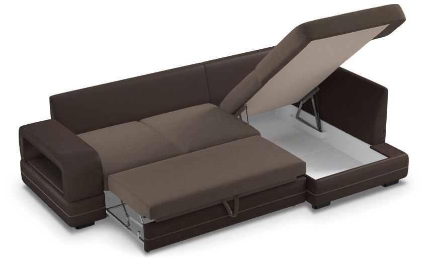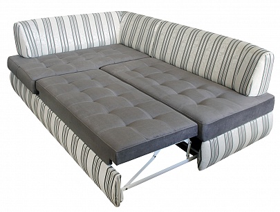Wenn Quadratmeter erlauben, wird ein eckiges Sofa eine interessante und bequeme Lösung sein. Es wird ruhig eingehende Gäste oder eine große Familie aufnehmen. Das Modell aus "Eine Menge Möbel" hat recht beeindruckende Maße von 300x165 cm und bei der Verwandlung wird mit einer Größe von 240x160 cm ein sehr komfortabler Schlafplatz erreicht. Das modulare Sofa liegt etwas in der Dimension dahinter.
