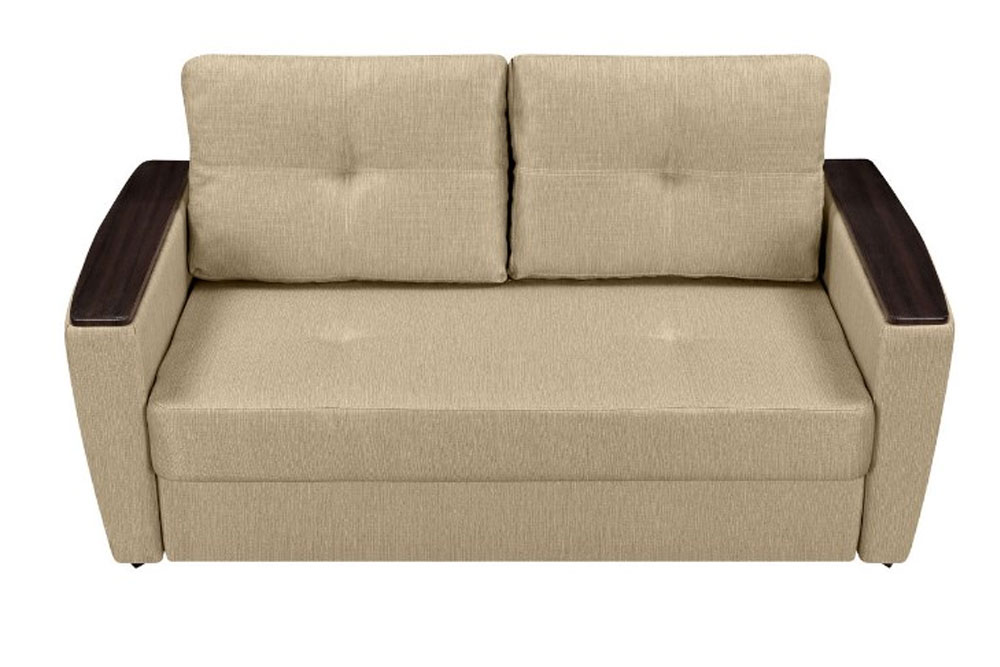 Die funktionalen Armlehnen des Sofas werden durch wengefarbene Auflagen aus MDF ergänzt, so dass Sie eine Tasse Kaffee oder ein Glas Wein darauf legen und bequem sitzen können, um sich zu entspannen. Von außen haben die Armlehnen eine praktische Nische und ein zusätzliches Regal, auf das man bequem eine TV-Fernbedienung und ein Buch legen kann. Das Eurobook-Layout ist einfach und langlebig, auch bei täglichem Gebrauch.