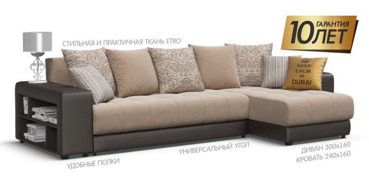 In der Linie "Dubai" von "Viele Möbel»Verschiedene Modelle werden sowohl in Größe, Modularität als auch in Polsterungsoptionen präsentiert. Die Firma produziert ein gerades und eckiges Modell dieses Namens. Das universelle gerade Sofa Modell "Dubai" hat sich zu einer der beliebtesten Marken im Sortiment entwickelt. Das Werk gewährt 10 Jahre Garantie auf einen Rahmen, der einem Gewicht von mehr als 350 kg standhält.
