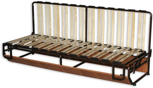 - Metallrahmen mit orthopädischer Rüstung. Mit Hilfe dieser Platten werden Holzelemente an der Stahlkontur befestigt und dadurch ein spezielles Raster erhalten. Meistens wird diese Option verwendet, um orthopädische Möbel zu erstellen.