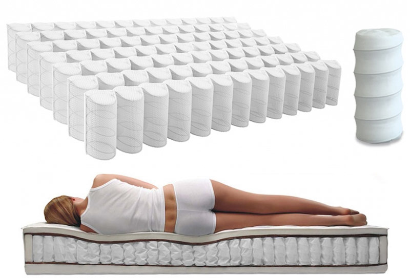 - Unabhängige Federblöcke. In diesem Fall befindet sich jede der Federn in einer Stoffabdeckung, was ein Gefühl von Komfort und außerordentlicher Weichheit erzeugt.Wenn ein solcher Boden verwendet wird, entspannt sich die Wirbelsäule einer Person in einer sitzenden oder liegenden Position vollständig auf natürliche Weise.