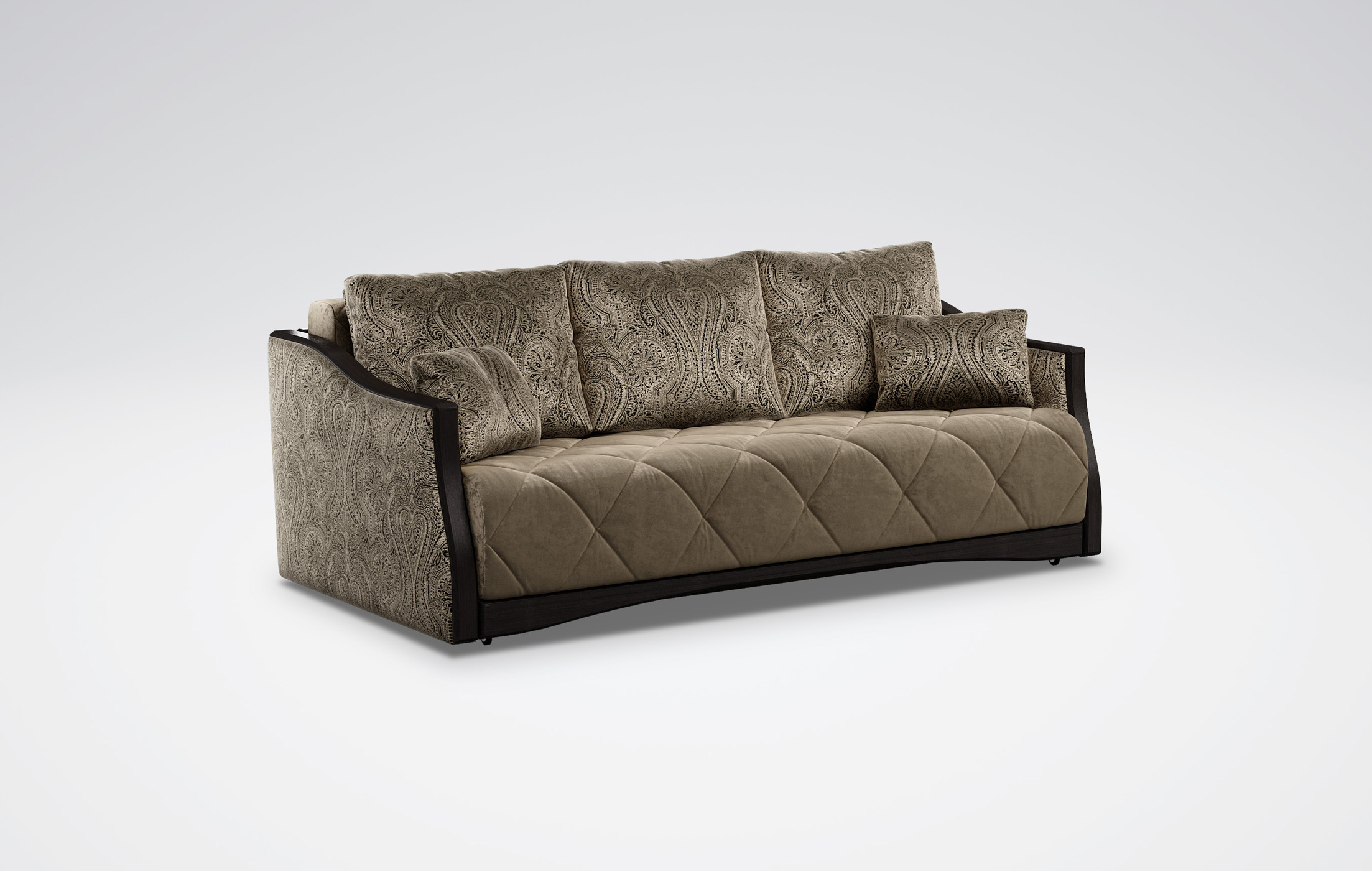 - 084 - ein direktes Sofa mit dem Eurobook-Mechanismus. Die Armlehnen wirken durch ihre geschwungene Form sehr schön und geräumig, nehmen aber wenig Platz in Anspruch, sind praktisch und komfortabel.Dieses Sofa hat nicht nur einen hohen Rücken, einen bequemen weichen Sitz, eine Unterwäsche, sondern auch eine spezielle Matratzenauflage, die beim Falten des Sofas verwendet werden kann. Er ist es, der den Traum angenehmer machen wird und auch verhindern wird, dass das Material verblasst und zerfetzt wird.