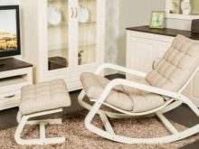 - Eine weitere Variante - gemütlicher Schaukelstuhl. Heute werden solche Modelle nicht nur in der klassischen Form, sondern auch in der ultramodernen, zum Beispiel der skandinavischen Plastikversion hergestellt. Der Schaukelstuhl kann den üblichen oder in einigen Fällen den Stuhl erfolgreich ersetzen.
