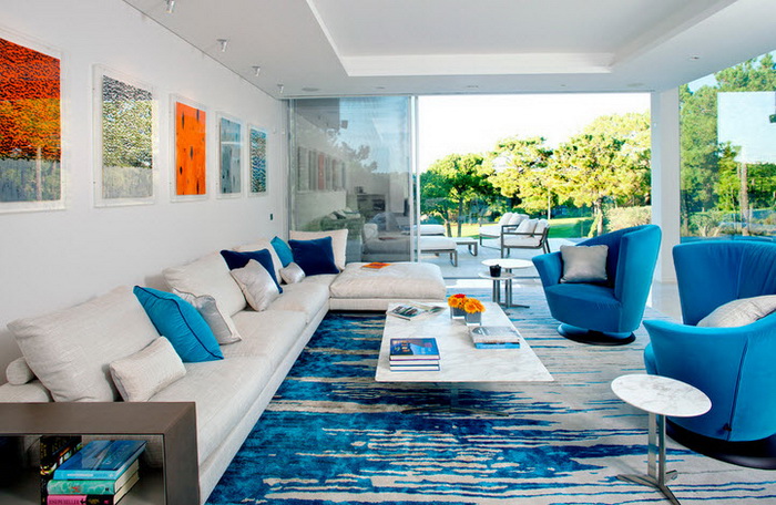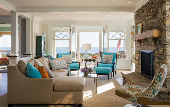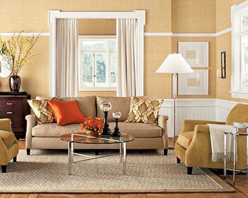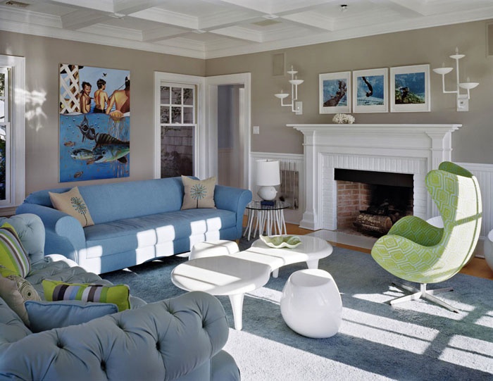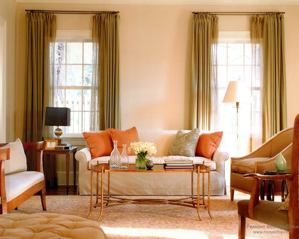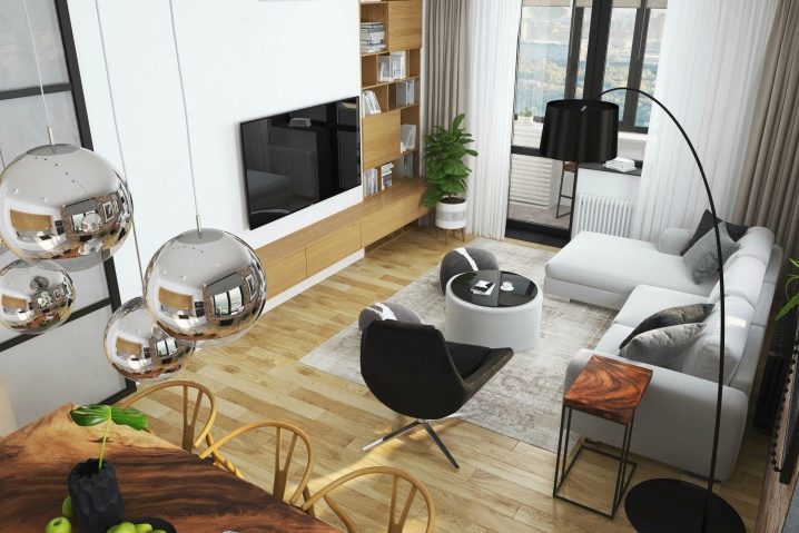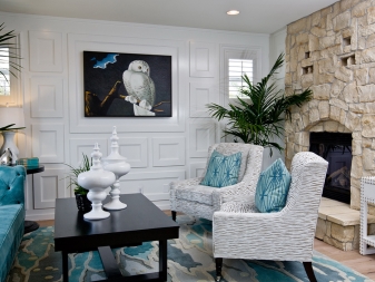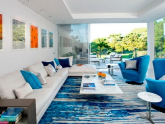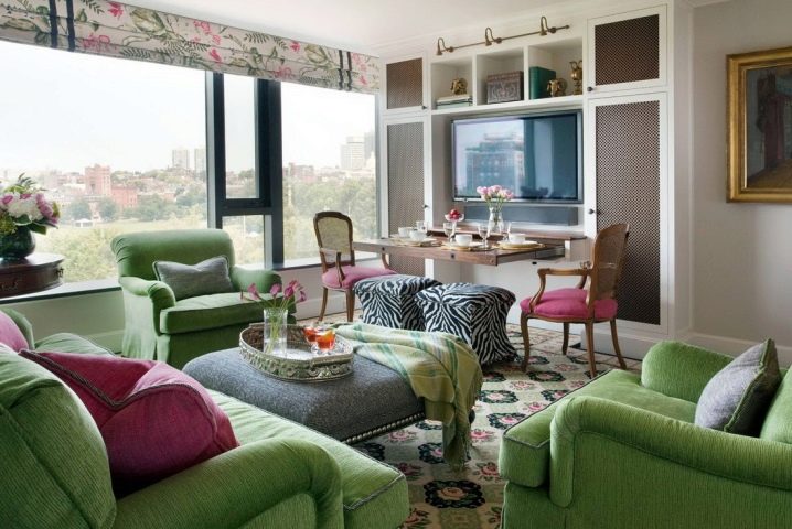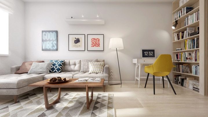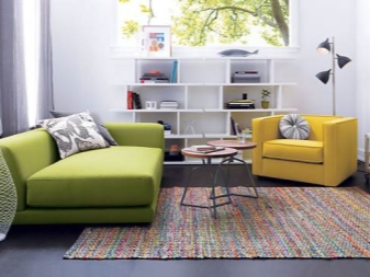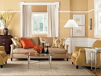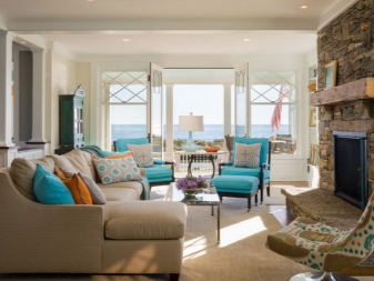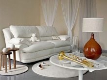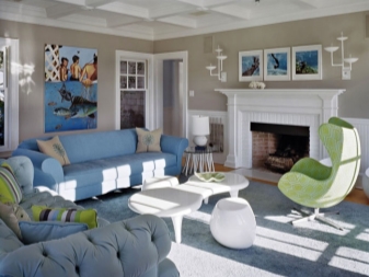 Bitte beachten Sie, dass es im gesamten Set nur ein helles Objekt geben sollte: Ein helles Sofa und zwei neutrale Stühle oder ein neutraler Stuhl und ein Sofa und ein heller Stuhl wirken ebenso ungewöhnlich und vorteilhaft. Sie können den Raum nicht mit gesättigten Farben überladen, da es in Zukunft unangenehm sein wird, darin zu bleiben.