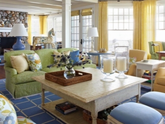 - Für den Stil "rustikal" das gleiche Stilkonzept von Möbeln ist nicht so wichtig wie die Farbharmonie. Alle Gegenstände sollten in der gleichen Farbe gekauft werden, während Sie auf dem Kontrast des Komforts spielen können: ein weiches anziehendes Sofa und ein Paar Stühle in geraden, harten Rückseiten, zum Beispiel.