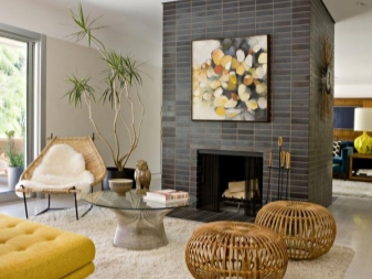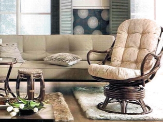 Um solche Gegenstände zu kombinieren, wird empfohlen, ein einzelnes textiles Element zu verwenden, zum Beispiel kann ein Rattanstuhl mit einem Kissen ergänzt werden, das aus dem gleichen Stoff wie das Sofa genäht ist.
