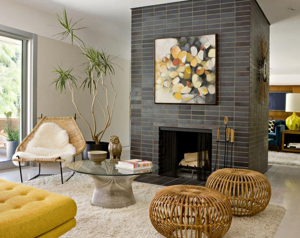 Alle Materialien können sich irgendwie miteinander anfreunden: Stoff und Rattan, Leder und Stoff, Holz und Leder. Dasselbe kann über Gewebe gesagt werden. Haben Sie keine Angst zu experimentieren. Wenn Sie bereits ein schönes Samtsofa gekauft haben, "vereinfachen" Sie das Interieur mit Hilfe von glatten Sesseln.