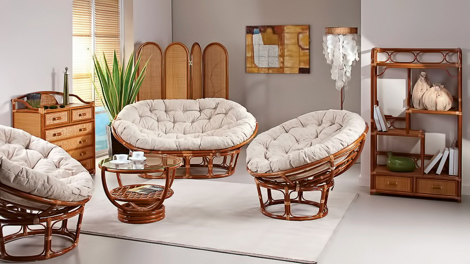 - Gartenmöbel Vor nicht allzu langer Zeit sind sie erfolgreich in die Innenräume von Häusern und Wohnungen eingezogen. Die beliebtesten Vertreter sind Rattanstühle, die jedem Raum eine Atmosphäre von Entspannung und Komfort verleihen. Sie können nicht als sehr bequem bezeichnet werden, aber vom Stil her sind solche Korbgeflechte universell. Sie sind perfekt mit Stoffelementen kombiniert, nehmen wenig Platz ein und können auf Wunsch für den vorgesehenen Zweck genutzt werden - als Ort der Entspannung auf der Straße.