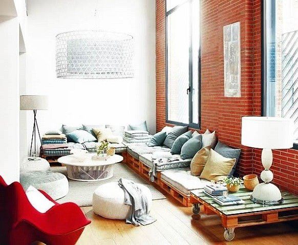 Sofas und Stühle, die nicht als weich bezeichnet werden können, sind aus Holz und besonders haltbarem Kunststoff. Auch auf dem Höhepunkt der Beliebtheit sind Rattan Rattan-Modelle. Die Popularität nimmt zu und Möbel werden aus Paletten hergestellt. Aufgrund seiner ungewöhnlichen Optik passt es gut zur modernen urbanen Stilistik.