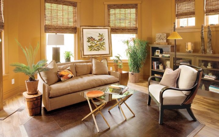- In Öko-Innenräumen Die Verwendung von echten Lederelementen sollte vermieden werden, aber natürliche Polstermaterialien sind willkommen. Flachs und Baumwolle werden am häufigsten verwendet. Auch oft Korbmöbel gekauft. Zum Beispiel sieht ein Paar Korbstühle mit einem Stoffsofa und Rattan gut aus. Nur Natürlichkeit ist wichtig: Wenn das Budget begrenzt ist, sollten Sie ein einfarbiges Polstermaterial wählen, das dem natürlichen Stoff am ähnlichsten ist.