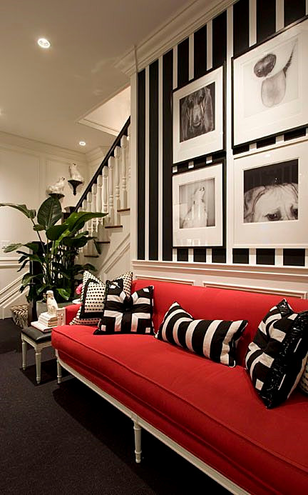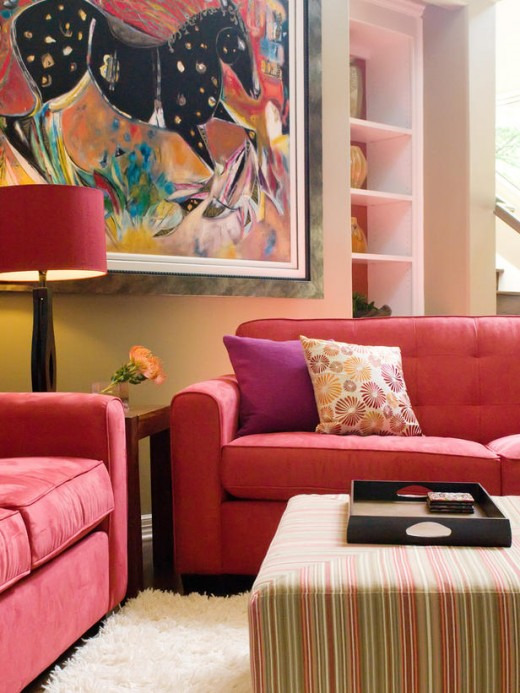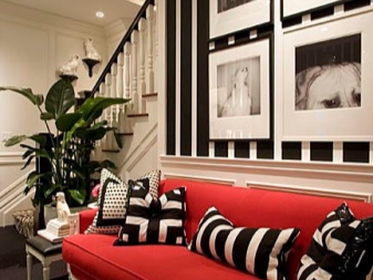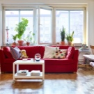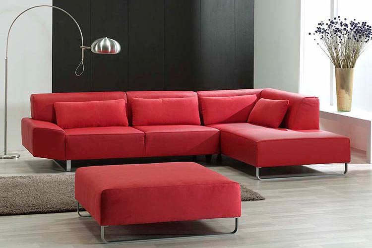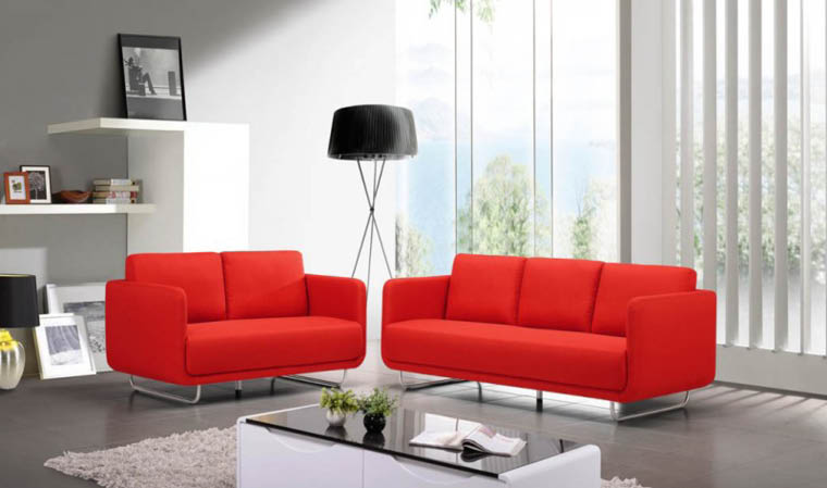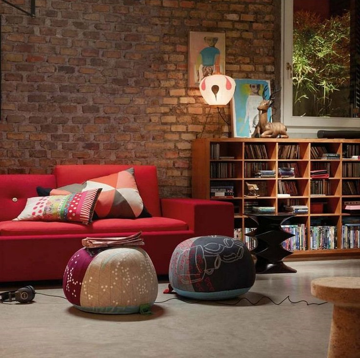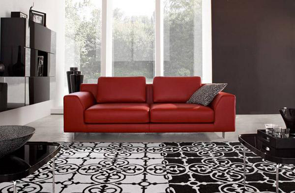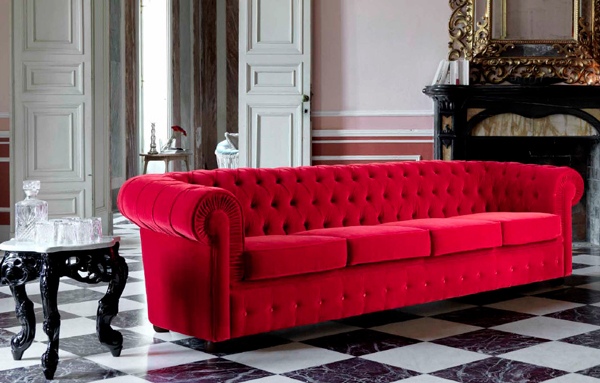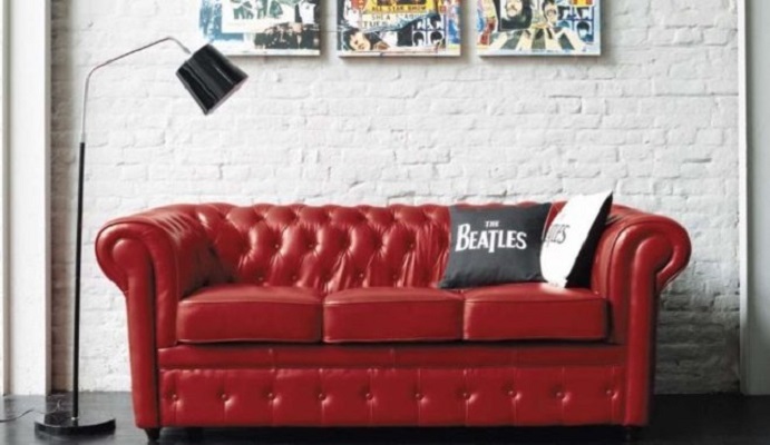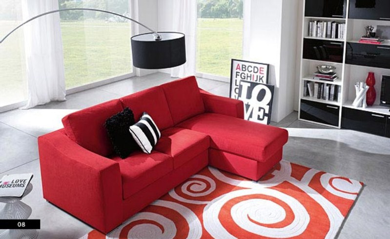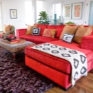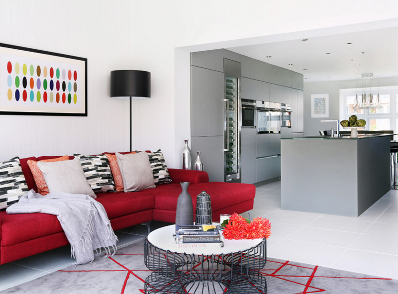 Red Sofa kann in einer Vielzahl von Räumen installiert werden, es gibt keine Hindernisse für solche Möbel, zum Beispiel im Wohnzimmer oder Esszimmer. Die Hauptsache - die richtige Kombination und kein Schnickschnack.