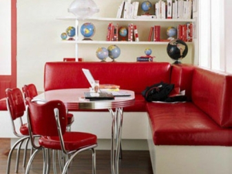 Wenn Sie Kreativität, Originalität und etwas Ungewöhnliches wollen, sind rote Möbel der perfekte Helfer. Es ist perfekt für die Umsetzung der ungewöhnlichsten Wünsche. Sie können es jedoch nicht übertreiben und experimentieren mit dem Mischen verschiedener Farben. Für den Hintergrund ist besser, Weiß, Milch oder Beige zu nehmen.