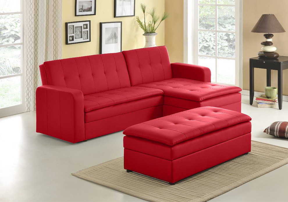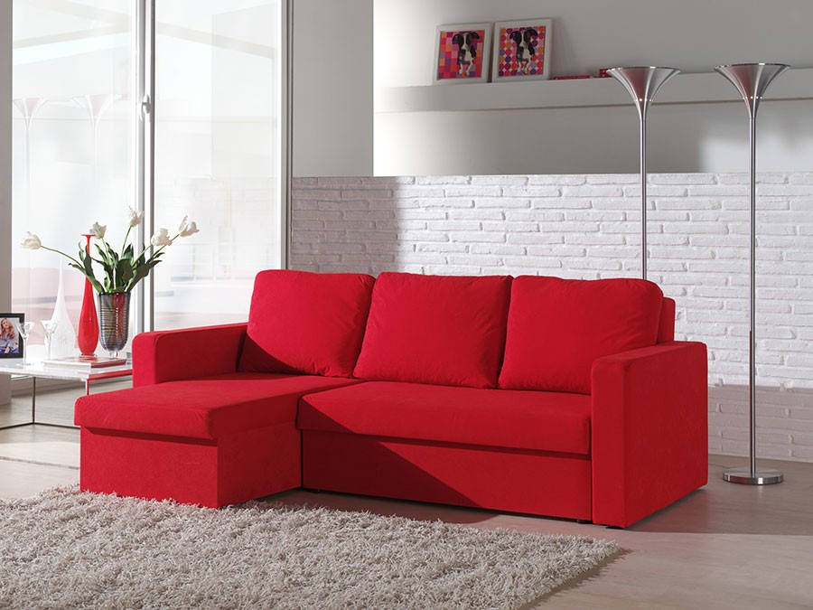 Das weiche Möbelprodukt für den Rest der roten Farbe mit einer Baumwollpolsterung, echtem oder einem Kunstleder wird ein Highlight jedes Zimmers werden. Gesättigt rot ist ideal für moderne Modelle von Polstermöbeln im Stil von High-Tech, Modern, Minimalismus. Ein Bett dieser Farbe wird sofort zum zentralen Element, so dass es oft bestellt wird. Normalerweise gibt es in roten Sofas keinen Umwandlungsmechanismus, sie werden nur für die Aufnahme von Gästen verwendet.