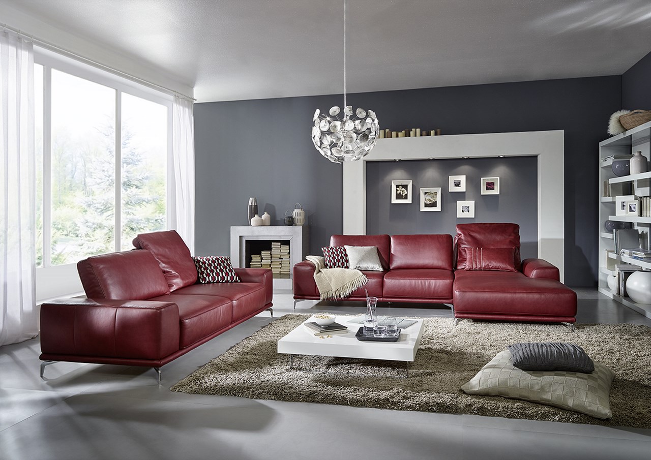 Nicht alle Menschen beziehen sich heute angemessen auf rote Möbel. Wenn ein Stoffsofa in sandfarbener Farbe als etwas Zulässiges wahrgenommen wird, dann sind die Dinge mit roten Möbeln ganz anders. Die Lederpolsterung eines Sofas aus gesättigtem Kirschholz wird sicherlich Assoziationen an Triumph und Luxus hervorrufen.Nicht jeder wird sich für solch ein "fettes" Dekor entscheiden. Je reicher der Ton des Sofas ist, desto "teurer" sieht das Interieur aus.