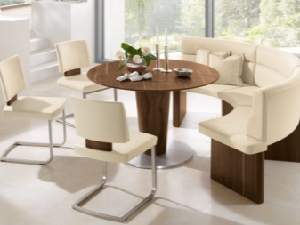 Wenn Sie ein rundes Sofa installieren möchten, empfiehlt es sich, eine kompaktere und funktionale Modelle, die mehr für das Sitzen konzipiert sind, zu bevorzugen. Experten aus dem Bereich der Dekoration von Wohngebäuden empfehlen die Wahl der Option mit einem Standard geraden Rücken, wo nur Teil eine abgerundete Form hat. Äußerlich ähneln diese Möbel einer Mischung aus einem kleinen Sofa mit einem weichen Stuhl. Es ist komfortabel - und gleichzeitig praktische Möbel. In den Geschäften finden Sie weiche abgerundete Ecken, die in der Regel mit einem Tisch ausgestattet sind.