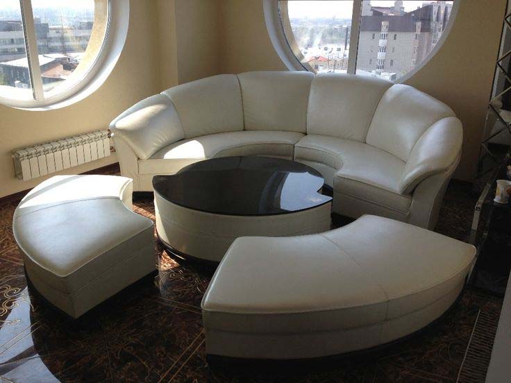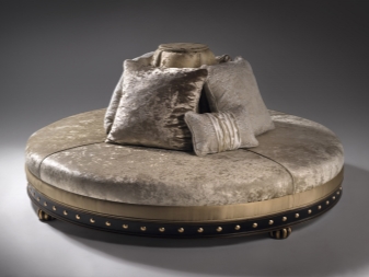 Runde Sofas - Premium-Möbel. Es gibt billigere Optionen und teurer, aber normalerweise sind die Preise signifikant.Als Beschichtung werden nur hochwertige natürliche und künstliche Materialien verwendet. Ein Sofa, das mit weichen und angenehmen, textilen Materialien gepolstert ist, wird für das Schlafzimmer oder das Wohnzimmer empfohlen.