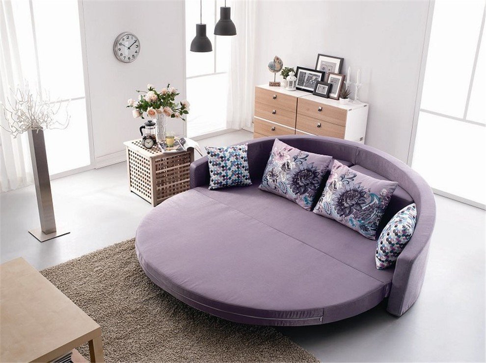 Das Sofa in runder Form ist mit bequemen Rücken- und Armlehnen ausgestattet, die sowohl zusammenklappbar als auch feststellbar sind.Faltoption ist besser für das Wohnzimmer geeignet. Bei Bedarf kann dieses Sofa in einen bequemen Stuhl verwandelt werden. Wenn Sie oft große Gruppen von Gästen akzeptieren, hören Sie auf einem starken Metallrahmen auf. Einige Modelle sind mit verschiedenen mobilen Elementen in Form von Tischen, Ständern oder Seiten ausgestattet.