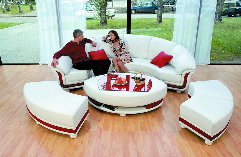 Wenn die Größe des Raumes es zulässt, können Sie zwei übereinander liegende Sofas gegenüberstellen und einen kleinen Esstisch in die Mitte stellen. In diesem Fall wird empfohlen, auf das Modell zu achten. "Lagune". Dies ist ein rundes Sofa, dem man schnell eine halbrunde Form geben kann, indem man einfach den vorderen Teil entfernt.Ein sauber abgerundeter Rücken, an den Sie sich jederzeit anlehnen und entspannen können, erhöht den Komfort.