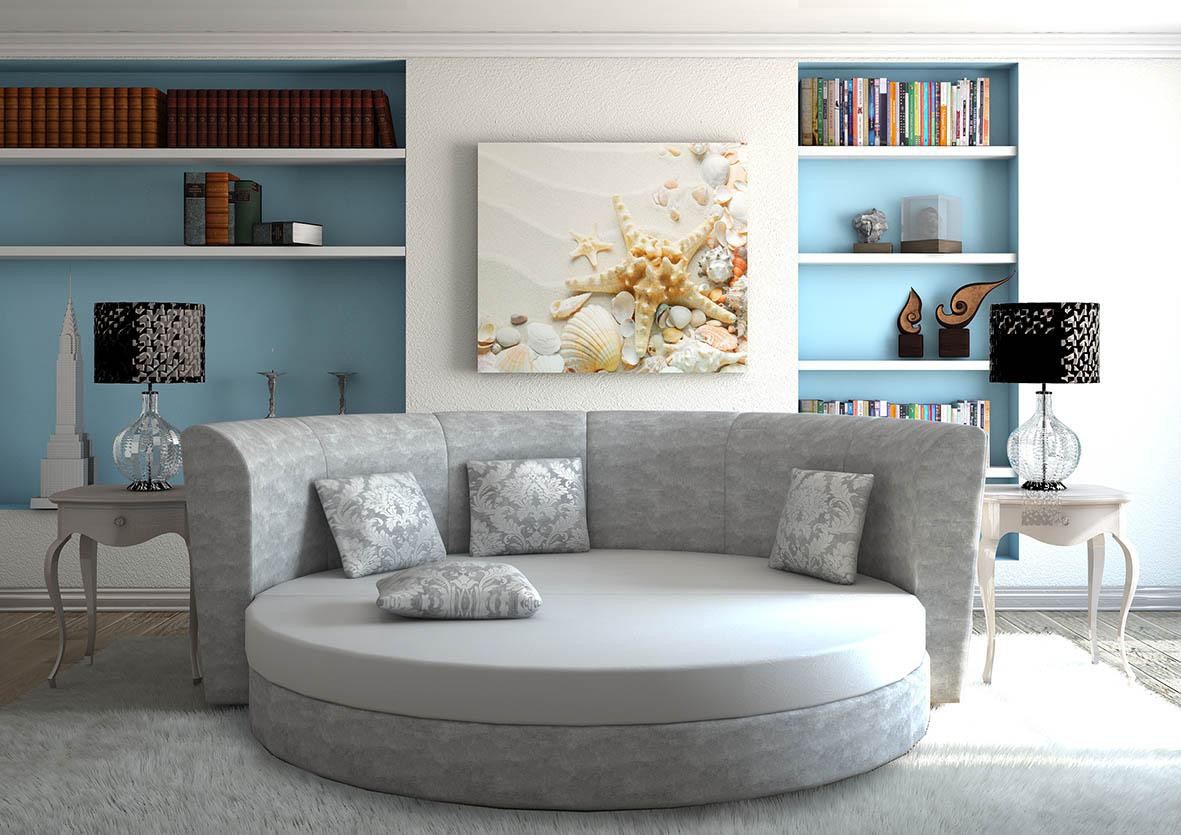 Experten sagen, dass das erste runde Sofa im neunzehnten Jahrhundert erschien. Zu dieser Zeit war er die Verkörperung von Luxus und Reichtum. Jetzt wird ein weiches Sofa in der obigen Form von Fans ungewöhnlicher Design-Ideen gewählt, ebenso wie diejenigen, die das langweilige Standard-Interieur abschwächen wollen.Moderne Hersteller haben eine große Anzahl solcher Möbelstücke geschaffen - für jeden Geschmack und jedes Budget.