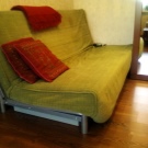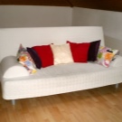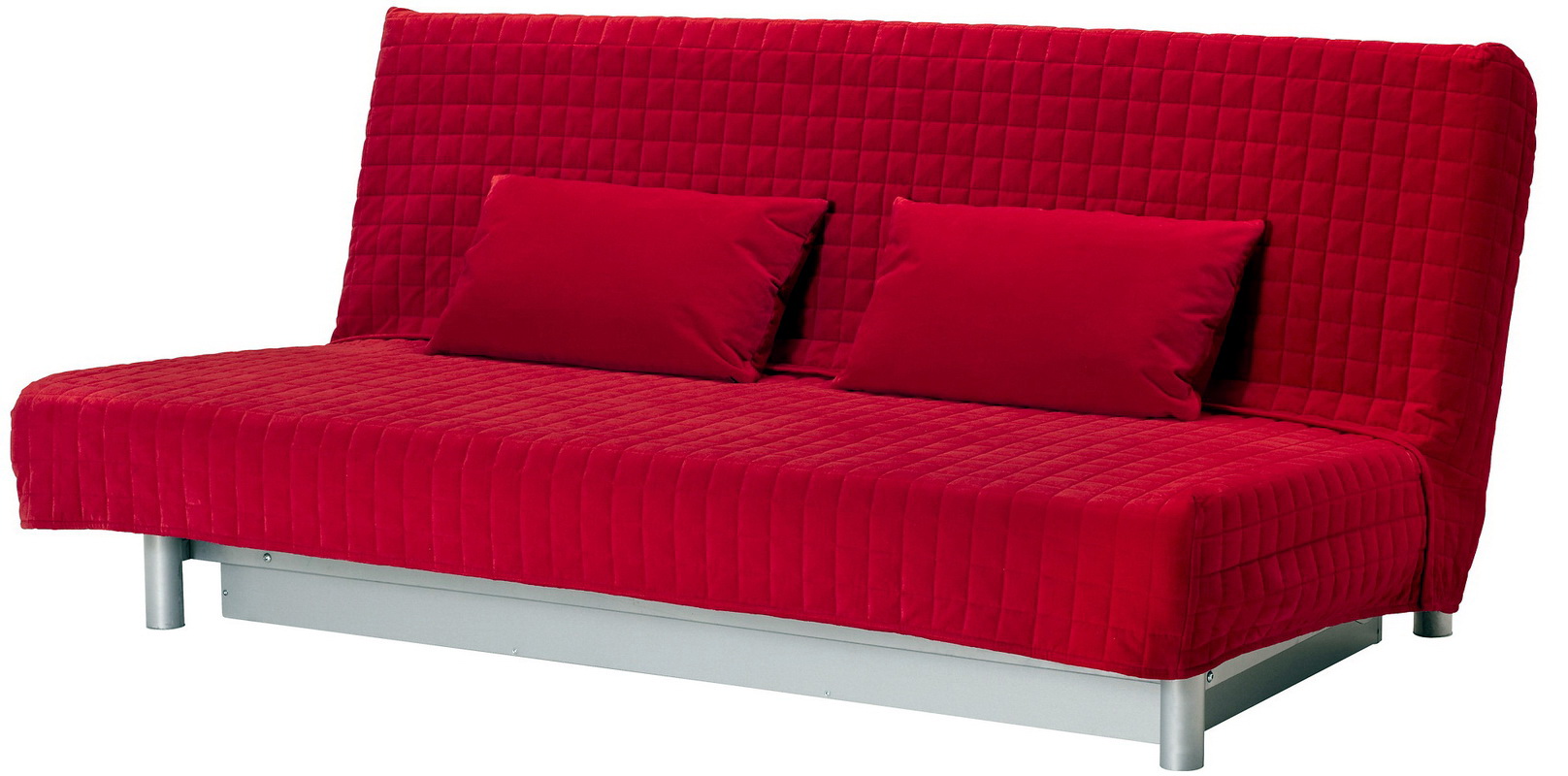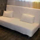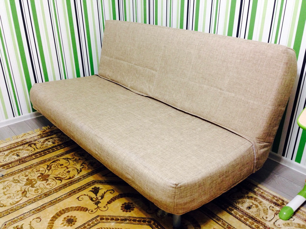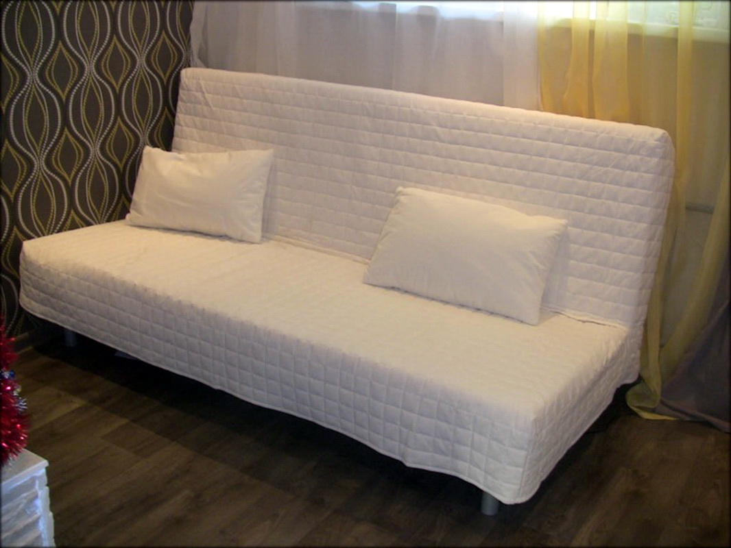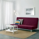 Schlafsofa von der Marke Ikea unterschiedliches bescheidenes Design und hohe Praktikabilität. Das Modell enthält einen universellen Rahmen aus Metall mit elastischen Querbalken aus Birkensperrholz. Matratze und Abdeckungen werden einzeln ausgewählt. Das Cover kommt mit 2 Kissen. Auf Anfrage können Sie Armlehnen und eine Wäschekiste kaufen, die unter dem Sofa installiert ist. Sie können aus 6 Matratzenoptionen wählen.Sie können eine preiswerte Version von Polyurethanschaum und ein luxuriöses Bett mit orthopädischen Eigenschaften kaufen. Die Matratze ist mit Klett am Hauptteil befestigt. Abdeckungen variieren auch in Farbe und Materialart. Der Klappmechanismus - "Click-Klyak" Der Vorteil dieses Sofas - die Fähigkeit, auf jedem PKW zu transportieren. Die gesamte Struktur ist demontiert und die Komponenten zeichnen sich durch geringes Gewicht aus.