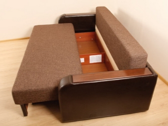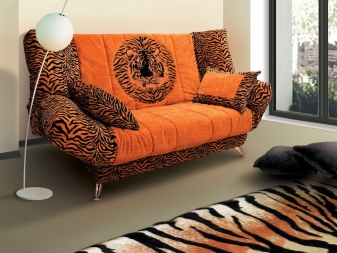 - "Akkordeon" - vykatnaya System. Der Mechanismus umfasst 3 Abschnitte, die durch Scharniere miteinander verbunden sind. Zwei von ihnen bilden einen Rücken, vom dritten stellt sich ein Sitzplatz heraus. Solche Sofas können auch mit abnehmbaren Bezügen geliefert werden.