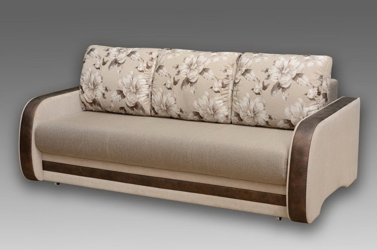 Sofa von der Fabrik Accord-Möbel sieht unauffällig aus, aber ziemlich solide. Das Metallgehäuse mit einem orthopädischen Gitter und einer abnehmbaren Matratze auf dem Bonnel-Federblock sorgt für Komfort und Zuverlässigkeit. Vier weiche Kissen sorgen für zusätzlichen Komfort. Das Sofa ist ideal für den täglichen Gebrauch, komfortabel und einfach zu bedienen. Umwandlungsmechanismus - "Pantograph". Der Liegeplatz hat eine Größe von 200 x 150 cm.