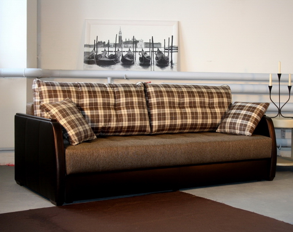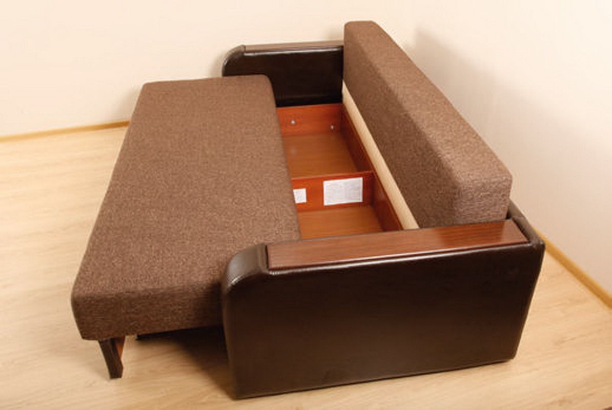 - "Eurobuch" - ein Mechanismus, der das Sofa sofort in ein bequemes Doppelbett verwandelt. Das vordere Ende wird mit Mini-Rollen nach vorne geschoben. Das Sofa von der Wand weg zu bewegen ist nicht erforderlich. Solche Modelle sind zuverlässig, geräumig, mit einer geräumigen Box für die Wäsche geliefert.