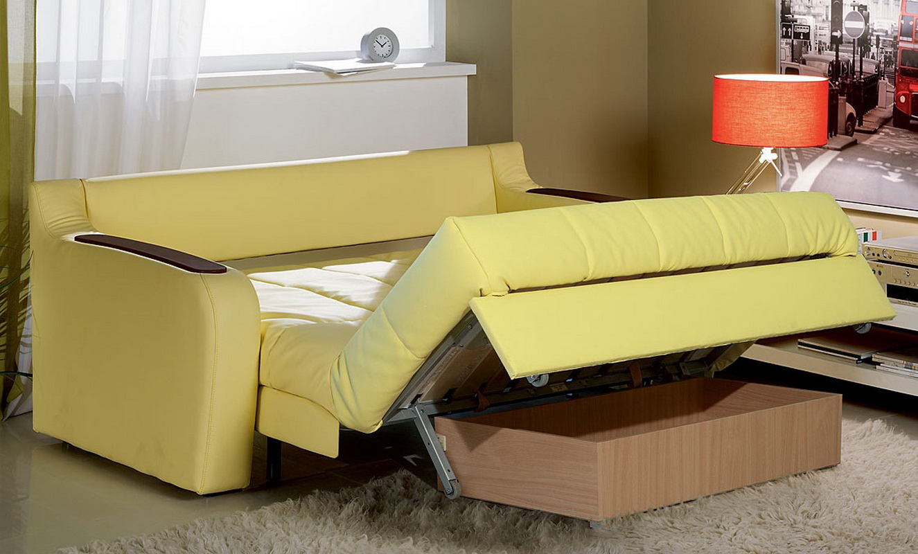 Bei der Auswahl eines Modells sollten Sie den freien Platz berücksichtigen, den Sie in der Wohnung haben. Wenn Sie genug davon haben, dann können Sie auf das Sofa schauen, das sich vorwärts bewegt. Die Buchversion des Klappsofas kann durchaus zu denen passen, die in einer Standardwohnung wohnen. Bei kleinen Wohnungen müssen kleine Modelle berücksichtigt werden. Für eine kleine Küche ist es sinnvoll, ein Mini-Sofa mit einem Schlafplatz zu wählen.