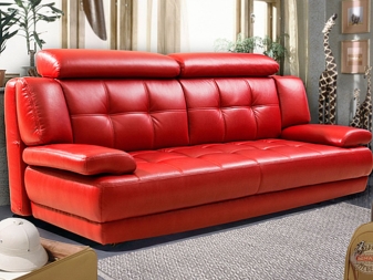 Wenn man das Aussehen des Sofas berücksichtigt, sollte man die Wahl der Lederausstattung in Betracht ziehen - es wird dem Produkt eine solide klassische Optik geben, die in jedes Interieur passt.