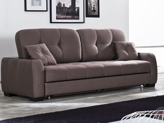 - gerades Sofa "Flipper"- die Verkörperung des Minimalismus und das Fehlen jeglicher Exzesse. Dieses Modell wird jedoch nur eleganter. Breite Armlehnen, falls gewünscht, können als kleine Tische dienen. Das Sofa ist mit mehreren nützlichen Funktionen ausgestattet: ein versenkbarer Schlafplatz, der den "Flipper" in ein Doppelbett verwandelt, ein Mechanismus zum Anheben der Rückenkissen, ein erweiterbarer Sitz und eine große Schublade für Kleidung und Bettwäsche.