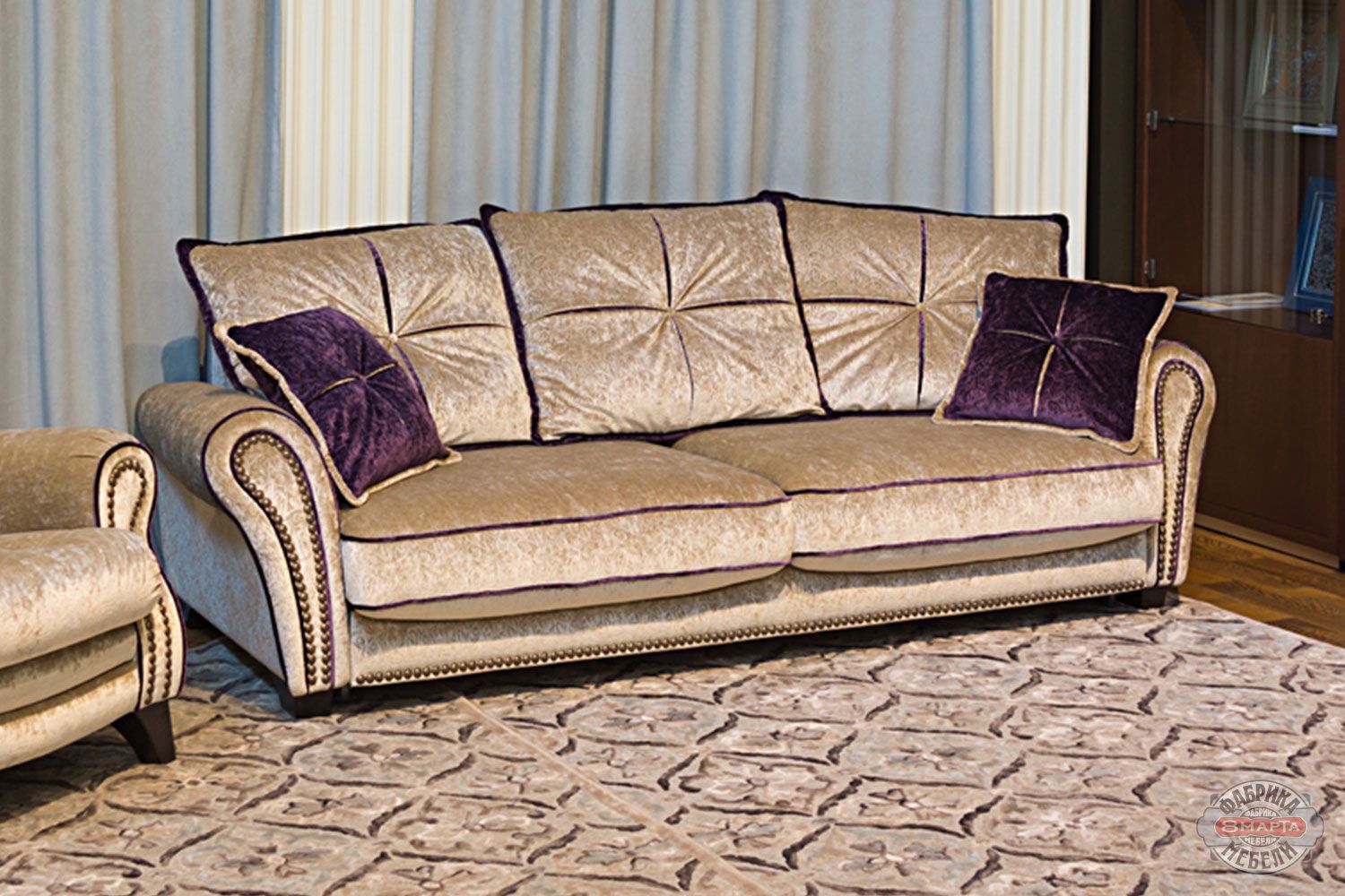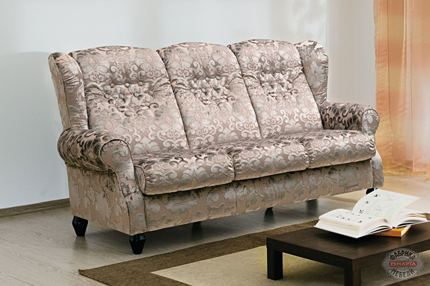 - DoppelsofaRichard"In seinem eigenen Original und schön.Weiche Armlehnen sind mit Einlagen aus Edelholz verziert. Darüber hinaus ist das Sofa mit einem "Buch" -Mechanismus ausgestattet, mit dem Sie Kleidung oder Bettwäsche unter dem Sitz aufbewahren können. Bei "Richard" gibt es einen begleitenden Stuhl, mit dem Sie eine ganze Reihe von Polstermöbeln erstellen können;