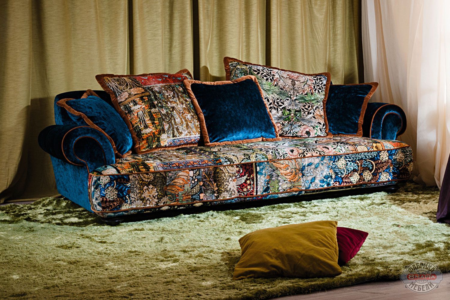 - Sofa "Verona"Ist einzigartig auf seine Weise - es enthält neben dem klassischen Grunddesign auch orientalische Anleihen, ausgedrückt in geschwungenen Armlehnen mit Verarbeitung, speziellen Knöpfen, Vorhängen und stilistischen Zierkissen. Das Produkt ist funktional - die Breite des Sitzes ermöglicht es einer Person zu schlafen, und das Vorhandensein eines einziehbaren Umwandlungsmechanismus macht Verona zu einem echten Doppelbett. Jede Polsterung kann für ein solches Design geeignet sein: beginnend mit einfarbigen und Pastellfarben, endend mit bunten orientalischen Ornamenten;