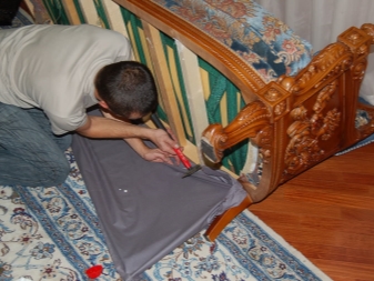 Achten Sie darauf, zu berücksichtigen strukturelle Merkmale eines bestimmten Möbelmodells. Einige Sofas haben eine ziemlich komplizierte Form und beim Austausch der Polster können sie nicht vollständig zerlegt werden. Sie müssen also versuchen, dass der Stoff an solchen Stellen die Form des Sofas vollständig wiederholt. Beim Ziehen eines eckigen Sofas ist es daher notwendig, dem Grad der Dehnung des Stoffes an den Ecken und Fugen der Verbindungsteile des Rahmens dieser Möbel besondere Aufmerksamkeit zu schenken. Es kann einige Schwierigkeiten geben, diesen Job ohne die richtigen Fähigkeiten zu machen.