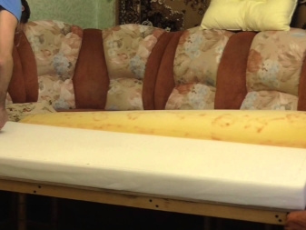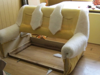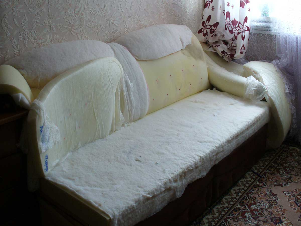 - Sicher zu Sie müssen wechseln und weichen Füller Sofaund nicht nur der Oberstoff. Wenn ein synthetischer Wintermacher als Füllstoff wirkt, sollte derjenige bevorzugt werden, der eine rein weiße Farbe hat, da dies ein Beweis für seine hohe Qualität ist. Wenn der Füllstoff Schaumgummi ist, dann ist es notwendig, zwei seiner Blätter jeweils 2 cm dick zu verwenden, und ein Blatt Filz dazwischen zu legen.