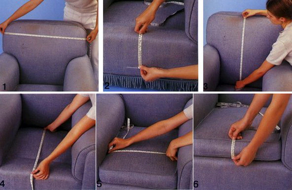 - Die zweite Option ist zeitaufwendiger. Zuerst werden alle Teile, die entfernt werden können - die Armlehnen, Rückenlehnen und Kissen werden vom Sofa entfernt, sorgfältig mit einem Maßband von allen Seiten gemessen und die Ergebnisse werden unter Berücksichtigung der Zugabe von 5 cm auf jeder Seite auf das Gewebe übertragen. In der Zukunft Alle Teile des Musters werden zugeschnitten und an den entsprechenden Stellen des Sofas angebracht. Wenn alles in Ordnung ist und Teile des Musters die erforderliche Größe haben, können Sie mit weiteren Schritten fortfahren.