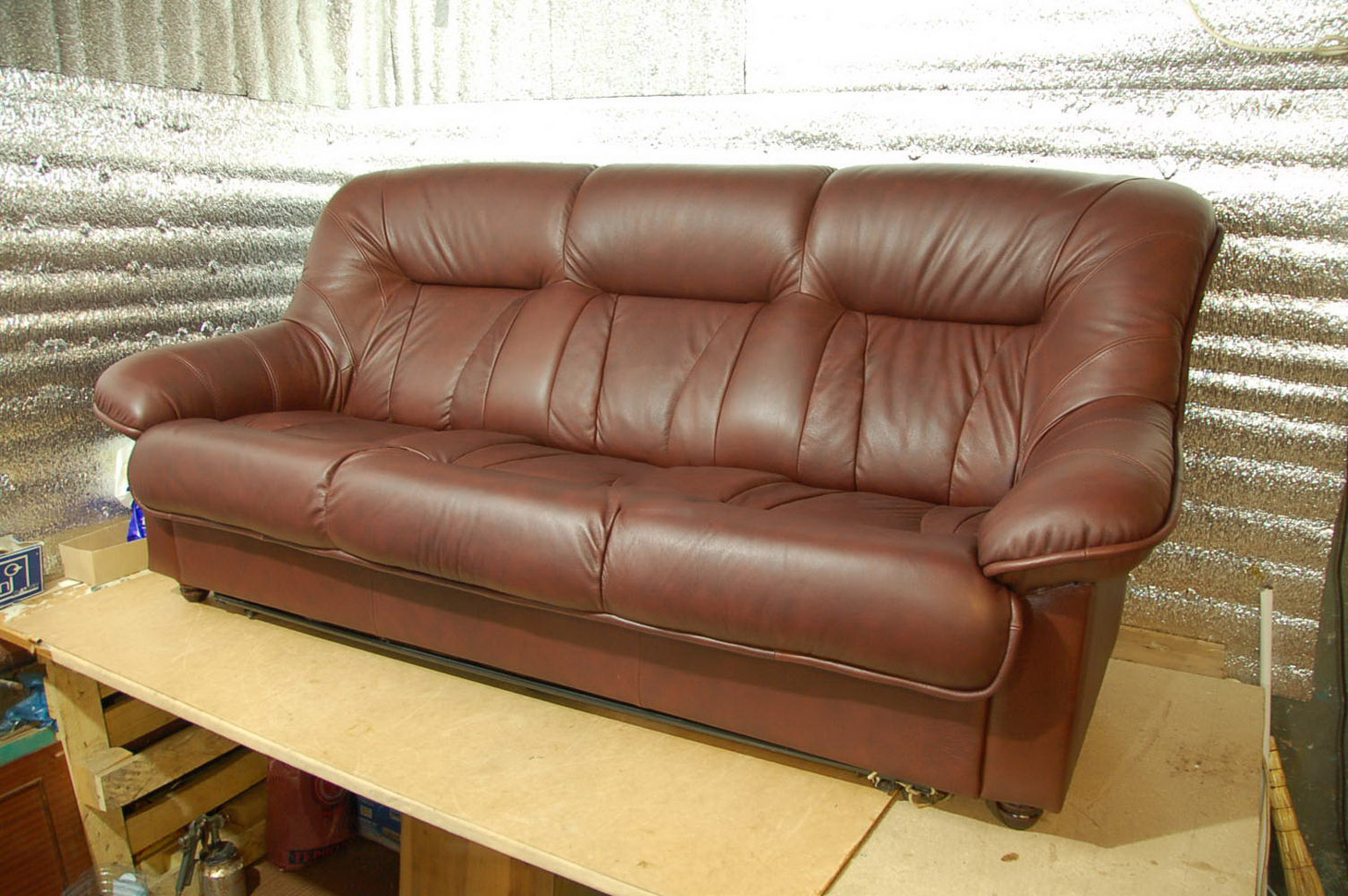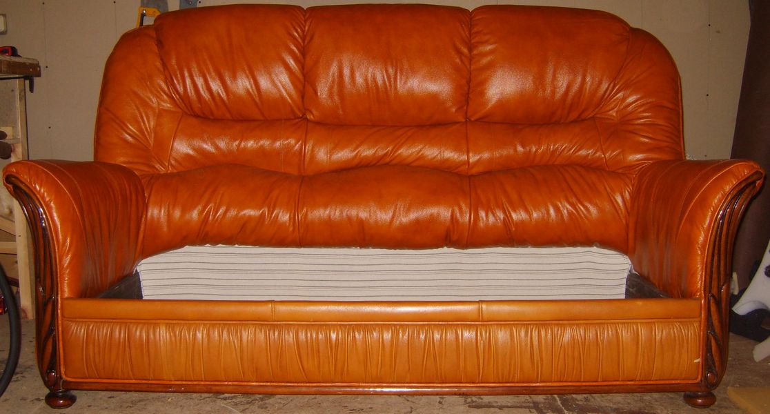Zuallererst ist es notwendig, auf die Auswahl und Beschaffung nicht nur des geeigneten Materials, sondern auch seiner ausreichenden Menge zu achten. Also, für ein Ledersofa, als Polstermaterial, ist es besser, nicht natürliches Leder, sondern Öko-Leder zu kaufen, und das Material sollte immer mit einer Reserve genommen werden.