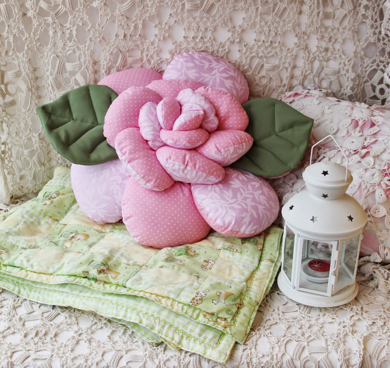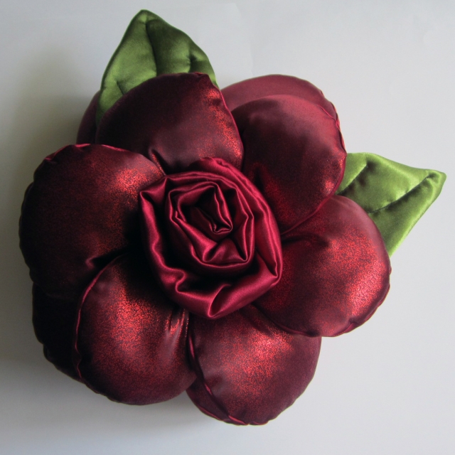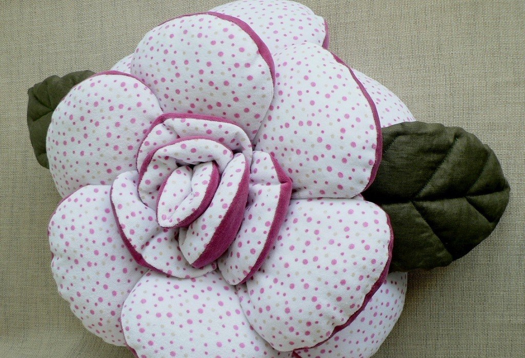 Eine tolle Idee für ein Geschenk wird Kissen-Rose, die jede Schönheit nicht gleichgültig lassen. Um es zu erstellen, ist es notwendig, die Anzahl der Ebenen des Produkts zu bestimmen. Wenn sie zwei haben, haben Sie 4 Blütenblätter von der gleichen Größe nehmen (8 Muster) und 4 Blütenblätter - ein wenig kleiner (8 Muster für die obere Schicht) und die Spitze - 1 Reiter (2 Muster), die Mitte - 2-Muster in einem Kreis. Durch die Mitte, näht die unteren Lappen, die oberen - zu niedriger, und die Spitze - zu den oberen Blütenblättern.