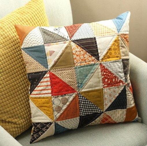 Quilten gibt ein sehr interessantes Ergebnis. Es gibt mehrere unnötige Flecken Stoff in jeder Familie. Es stellt sich heraus, dass es auch eine kostengünstige Lösung ist, die ideal für die Dekoration eines Sofas in einem Landhaus oder in einem Landhaus ist.
