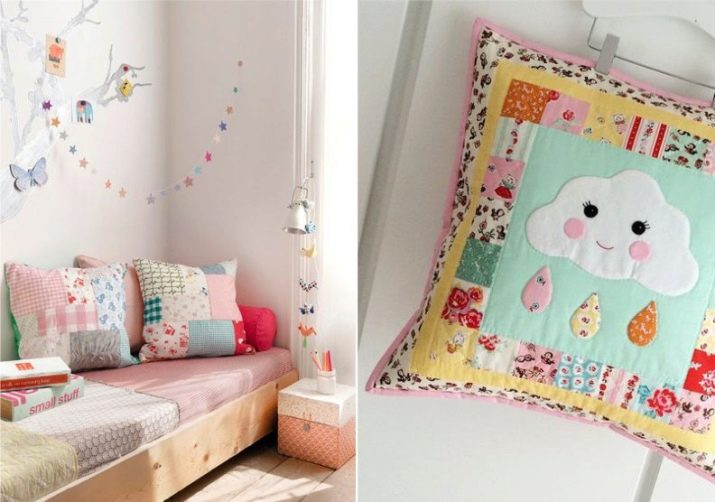 Kissen für das Sofa mit eigenen Händen zu machen und sie im Innenraum des Kinderzimmers zu verwenden, ist ideal, wenn Sie eine festliche Atmosphäre schaffen möchten. Sie können Ihrem Kind helfen, Ängste zu überwinden oder es auf den gewünschten Modus einzustellen. Um Ängste zu überwinden, können Sie ein Kissen mit einer Tasche nähen, wo das Baby ein Gebet oder Foto der Eltern, die es während des Schlafes schützen wird, stellen kann. Um dem Kind zu gefallen, können Sie ein Kissen mit dem Bild seines Lieblingscharakters erstellen.