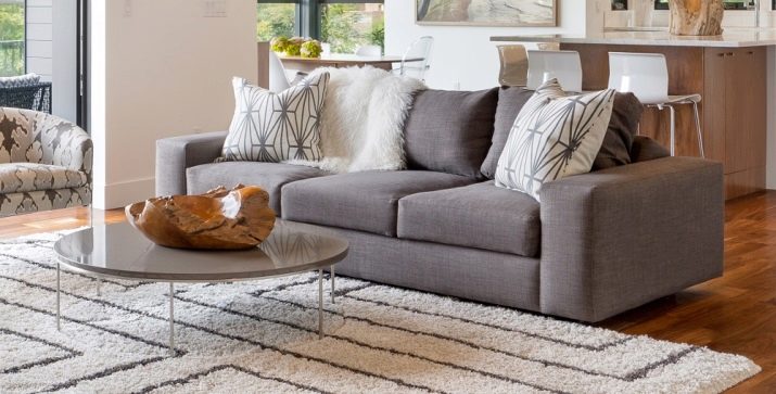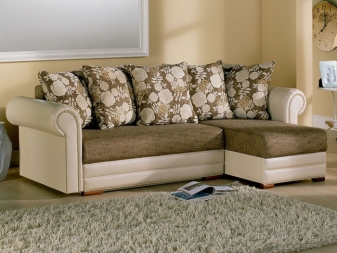 Polstermöbel zeichnen sich durch eine Vielzahl von Formen und Größen aus. Sofas und Sofas können für die Installation in einer kleinen Küche und für die Unterbringung in geräumigen Wohnzimmern entworfen werden. Große modulare Sofas können aus Käufern von Segmenten bestehen, wobei die Abmessungen des Hauptmoduls in der Regel 252 x 112 cm betragen; die Größe der Ottomane beträgt 92 x 172 cm, die eckigen Module sind 112 x 112 cm.